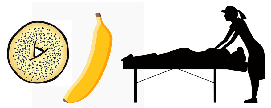 At the finish line, I am impressed to see two very muscular Marines in camouflage, wearing full gear, running for a fellow Marine who had lost his life in Afghanistan. The finish line is very festive, and sponsors provide bottled water, a banana, a bagel, and a free 5-minute massage performed by students trying to get certified.